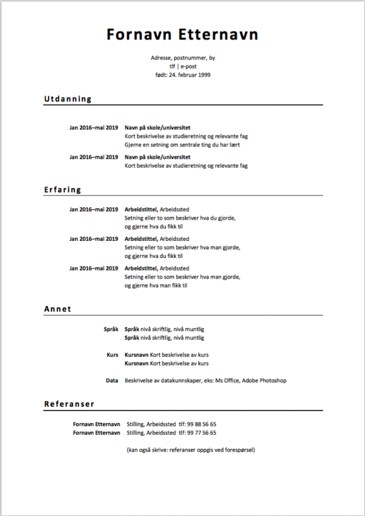 Last ned forskningsrådet cv mal gratis i PDF